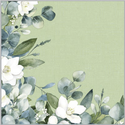 Servítky MANK Maxime spájajú krásu prírody s moderným dizajnom a sú ideálnou voľbou na slávnostné prestieranie. Ich mimoriadne všestranný a univerzálny vzhľad sa prispôsobí každej slávnostnej príležitosti. Jemný zelenkavý podklad v kombinácii s motívom eukalyptu a bielych kvetov vytvára elegantnú, prírodnú a nadčasovú atmosféru. Perfektne doplnia svadobnú tabuľu, oslavy aj iné výnimočné chvíle a dodajú každému stolu harmonický vzhľad. Ak hľadáte svadobné servítky s prírodným motívom, ktoré sú moderné, elegantné a ľahko kombinovateľné, servítky Maxime sú ideálnou voľbou. Servítky doplňte o stredovú šerpu na stôl v rovnakom dizajne a vytvorte nezabudnuteľné prestieranie.